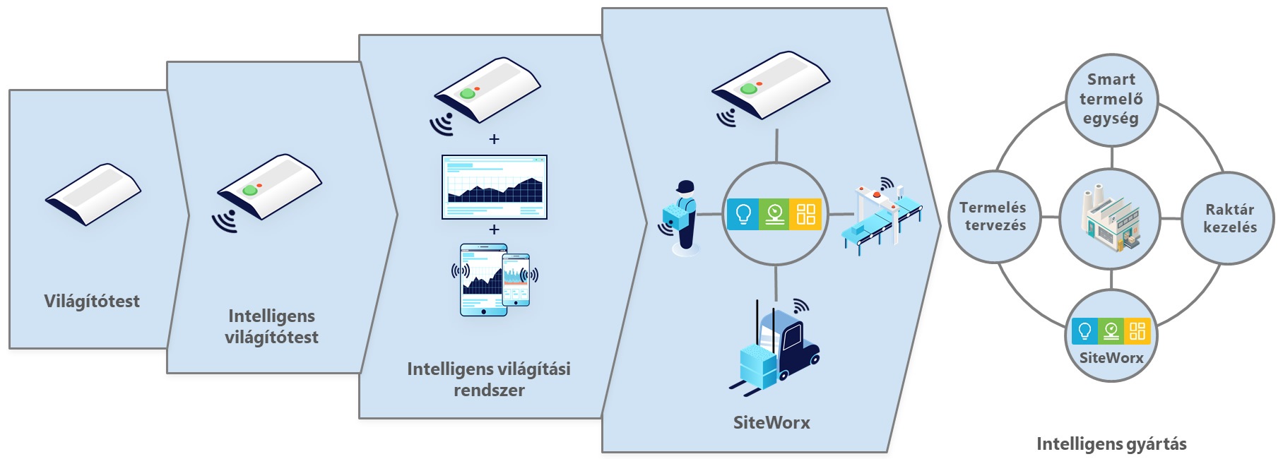 A SiteWorx™ innovatív, felhőalapú platformmal összekapcsolt IoT érzékelők okosabb épületek és vállalkozások létrehozásához járulnak hozzá. A rendszerünk intelligens világítással és vezeték nélküli szenzorok széles választékával, bármely épületet, létesítményt vagy vállalkozást képes valós idejű és alkalmazható adatok forrásává alakítani. A teljeskörűen testreszabható IoT megoldásaink jelentősen javítják a költséghatékonyságot, a termelékenységet és a biztonságot az egész vállalatban.