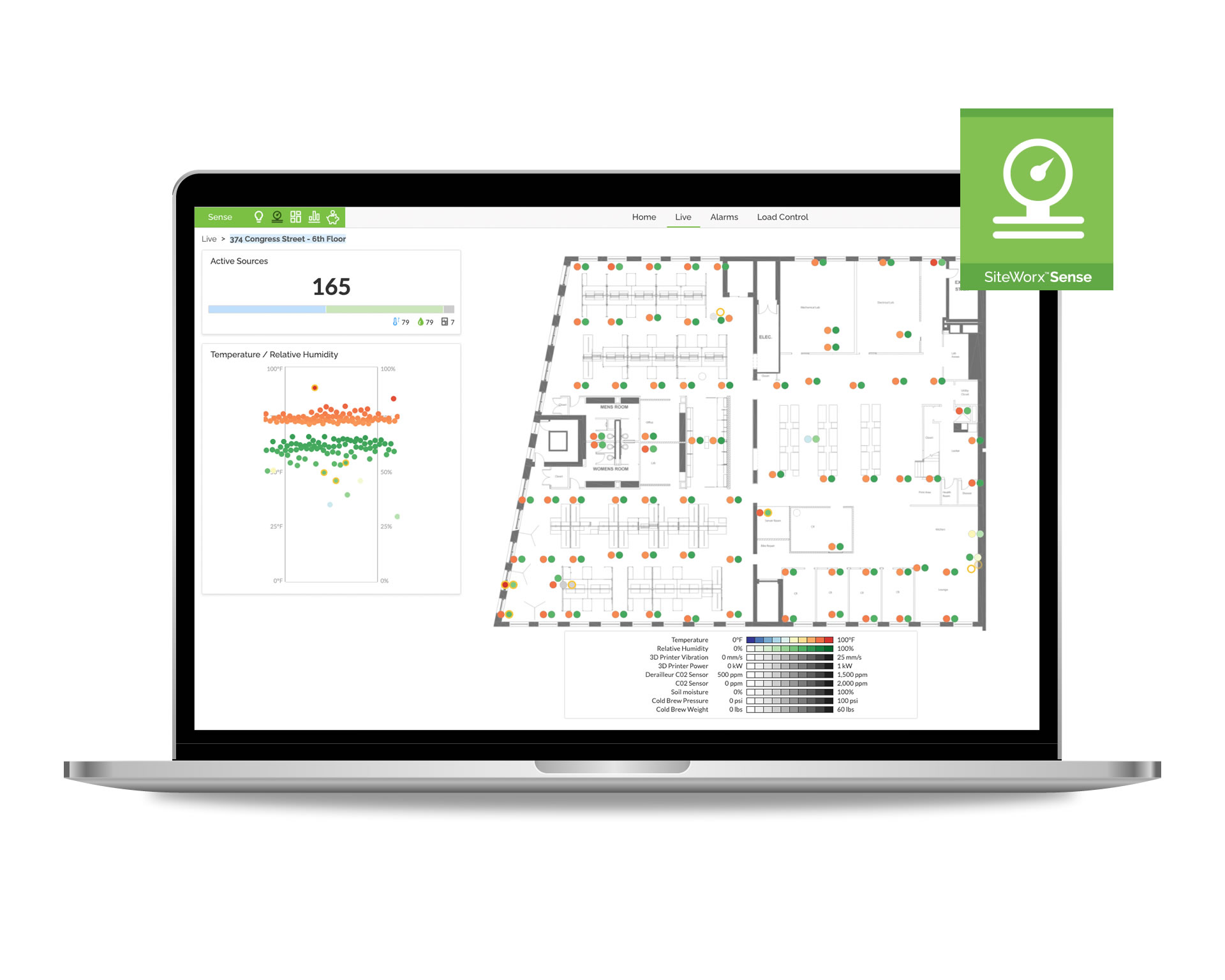 A világítás monitorizálása és irányítása mellett, a SiteWorx lehetőséget biztosít elektromos és nem-elekromos berendezések fogyasztásának, valamint a levegőösszetételnek a valós idejű felügyeletére.